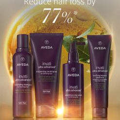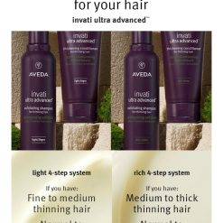 Reduce hair fall by 77% due to breakage with invati ultra advanced 4-step system. Aveda’s latest advancement for thinning hair features our triple-action follicle vitality complex. which creates an optimal environment to support healthy-looking hair. The 4-step rich system for medium to thick thinning hair includes: Rich Exfoliating Shampoo. Rich Thickening Conditioner. Revitalising Scalp Serum. Fortifying leave-in Treatment.
