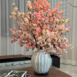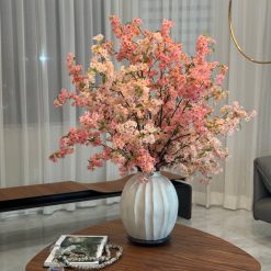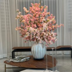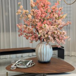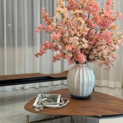 This bouquet of elegant white cherry a adds a fresh and stylish touch to any room. The branches are presented in the Astoria Vase in ceramic brings sweeping lines and a modern grooved finish to a classic silhouette and matte white finish.
