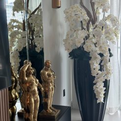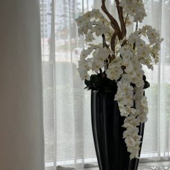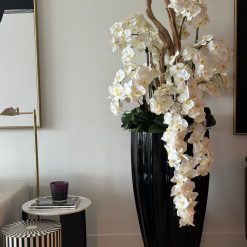 San Jose Planter in Glossy Black with Cascading White Orchids