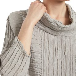 A loose cowl neck relaxed-fitting blouse is a must-have timeless piece that will be worn for years. Enjoy it made from the silk linen material with a playful crinkled texture in a cream hue that’s always in style.