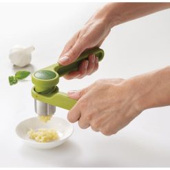 Most garlic presses require strong hands to operate and their vertical squeezing action can often be awkward to use. With the Helix garlic press. however. the squeezing force is applied horizontally. which is much more comfortable and utilises the power of the shoulders as well. In addition. its unique. twisting mechanism multiplies the force used. which means you get more squeezing power from less effort.
