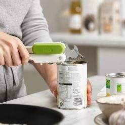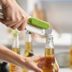 This multi-function gadget looks similar to a standard can opener but actually incorporates three handy tools in one. Firstly. it has a strong. stainless-steel cutting mechanism that opens conventional cans with ease. Then. by rotating one of the arms 360 degrees. you reveal two further tools – a ring-pull lifter and a bottle cap opener – neatly hidden inside.