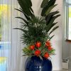 Tropical Mix Plants in Cobalt Blue Globe Planter