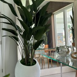 The spiral accent lines on our Spiral Planter render this perfectly planted Bird of Paradise. not only making it a functional piece but also extremely modern. This design creates a captivating blend of contemporary elegance and vibrant tropical foliage. This versatile plant and unique planter will add elegance and vibrancy to any room. Comprised of stacked concave layers that wrap around to form a modernistic globe. these bowl planters deliver an unconventional shape that actually accentuates both contemporary and traditional décor. The pots are a bit funky. super swanky and just what you need to impress even the pickiest of house guests.