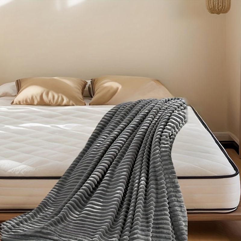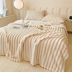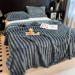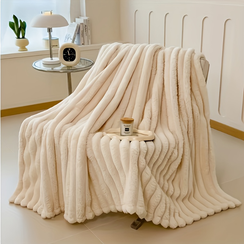 Ultra-Soft Faux Rabbit Fur Throw Blanket – Lightweight All-Season Cozy Bedspread & Couch Cover, u002F Striped Plush Bedspread for Bed, Travel, Camping, Hiking – Machine Washable Rabbit-Light -Like Texture (No Animal Sourcing)
